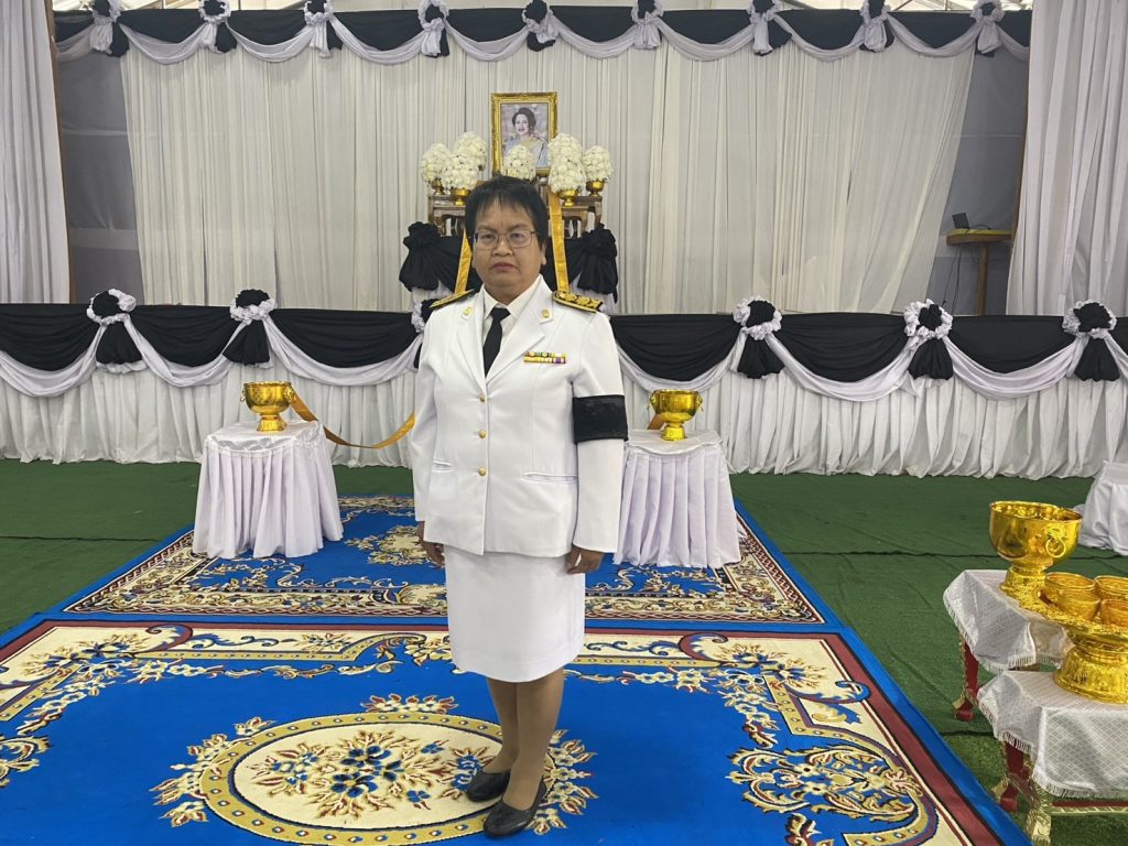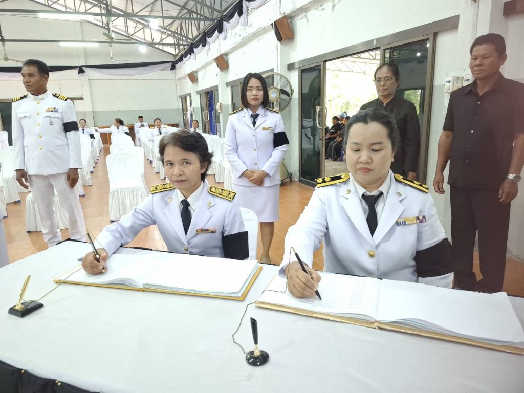 พิธีสรงน้ำพระบรมศพเบื้องหน้าพระฉายาลักษณ์สมเด็จพระนางเจ้าสิริกิติ์ พระบรมราชินีนารถ พระบรมราชชนนีพันปีหลวง ณ หอประชุมอำเภอพยุห์