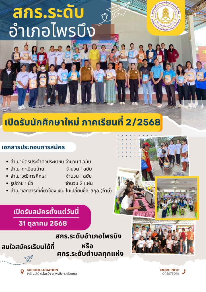 โครงการพัฒนาครูและบุคลากรด้านการนิเทศการจัดการเรียนรู้ตลอดชีวิต การพัฒนาตนเอง และคุณวุฒิตามระดับ ของสถานศึกษา ระหว่างวันที่ 2-3 ตุลาคม 2568