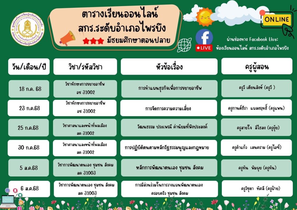 (๑) เป็นการจัดการเรียนรู้สำหรับกลุ่มเป้าหมายที่เป็นผู้ซึ่งมิได้ศึกษาอยู่ในสถานศึกษาไม่ว่าด้วยเหตุใด เพื่อให้ได้รับคุณวุฒิระดับการศึกษาขั้นพื้นฐานด้านสามัญศึกษาหรืออาชีวศึกษา